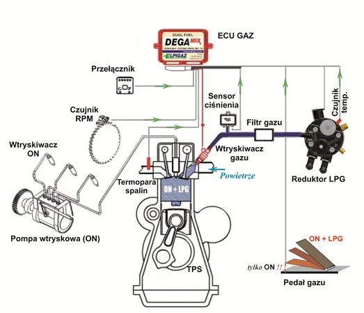 Kluczowe informacje:- Instalacja gazowa w dieslu polega na wtryskiwaniu mieszanki gazu i powietrza, co zmniejsza zużycie paliwa.
